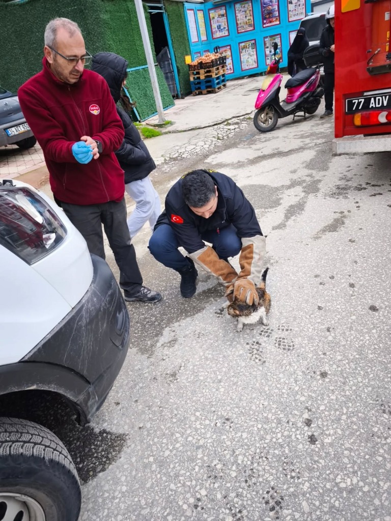 Aracın içinden gelen sesleri fark eden duyarlı araç sahibi, kaputu açtığında kedinin mekanik aksamların arasında mahsur kaldığını gördü ve durumu hemen Çınarcık Belediyesi İtfaiye Müdürlüğü ekiplerimize bildirdi.