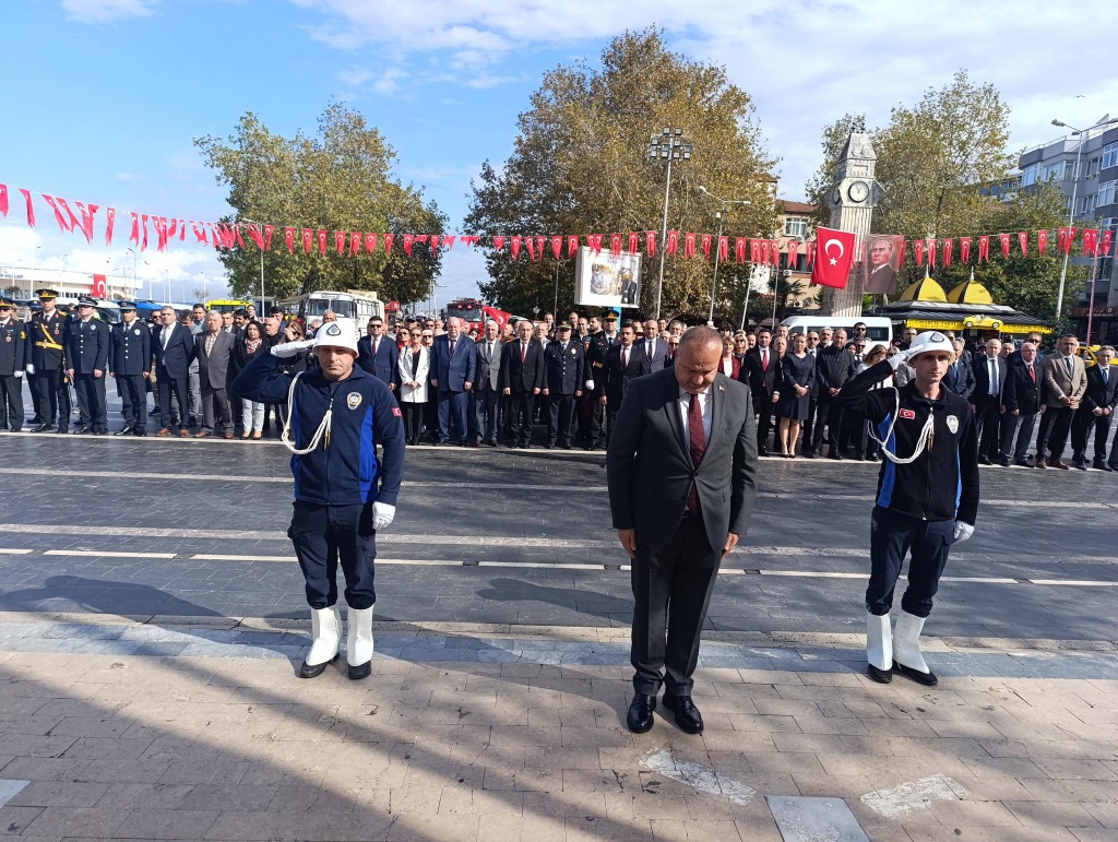 Cumhuriyet Meydanı’nda gerçekleşen 29 Ekim Cumhuriyet Bayramı töreni, Atatürk Anıtı’na çelenk sunumuyla başladı.