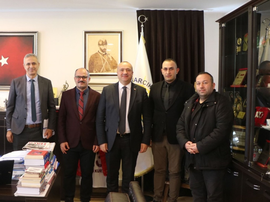 Esenköy Belediye Meclis Üyesi Davut Pekmez ile Emrah Pekmez, Bem-Bir-Sen Yalova İl Başkanı Serkan Karadağ ile İl Başkan Yardımcısı Hakan Ak ve 106 No’lu Çınarcık Minibüs Kooperatifi Başkanı Abdulkadir Mugan, Belediye Başkanımız Avni Kurt’u makamında ziyaret etti.