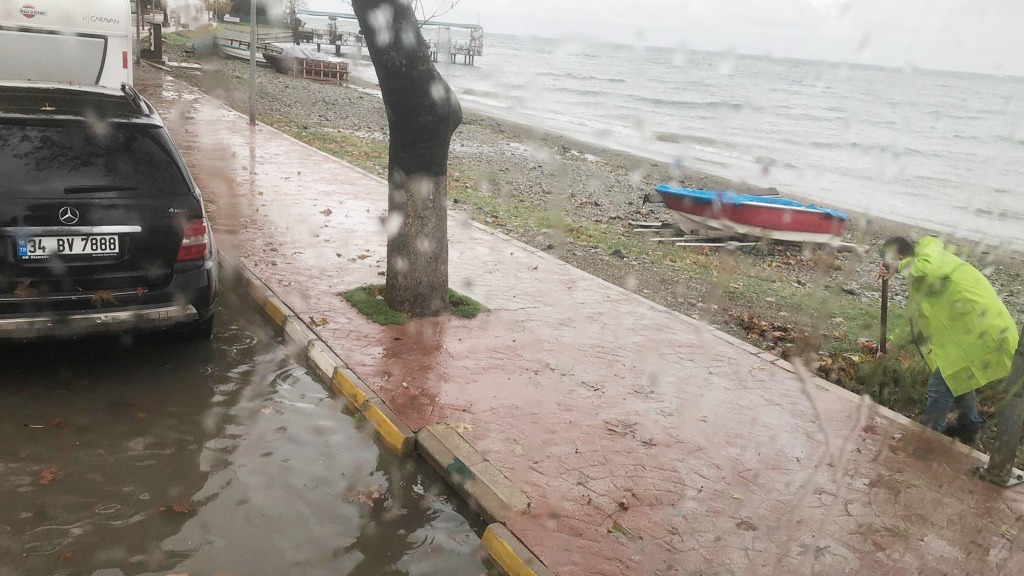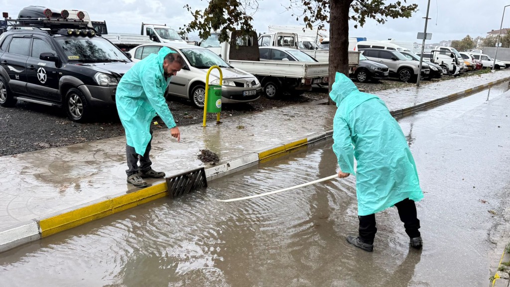 Yağmurun etkili olduğu anlarda dahi görev başında olan ekiplerimiz, su birikintilerinin ve taşkınların önüne geçmek için büyük gayret gösteriyor.